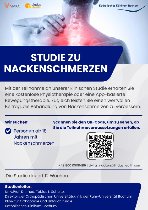 Einladung an alle (mind. 18 Jahre alt), die seit mind. 4 Wo an unspezifischen #Nackenschmerzen leiden und noch nicht physiotherapeutisch anbehandelt worden sind!