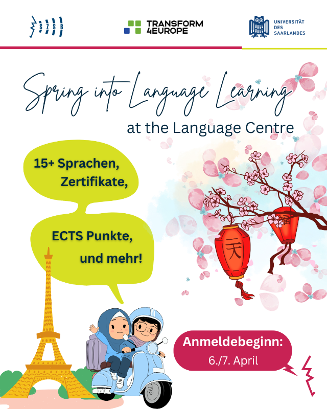 Mehr Informationen über uns und unser Kursangebot findest du hier --> uni-saarland.de/einrichtung/sprachenzentrum.html